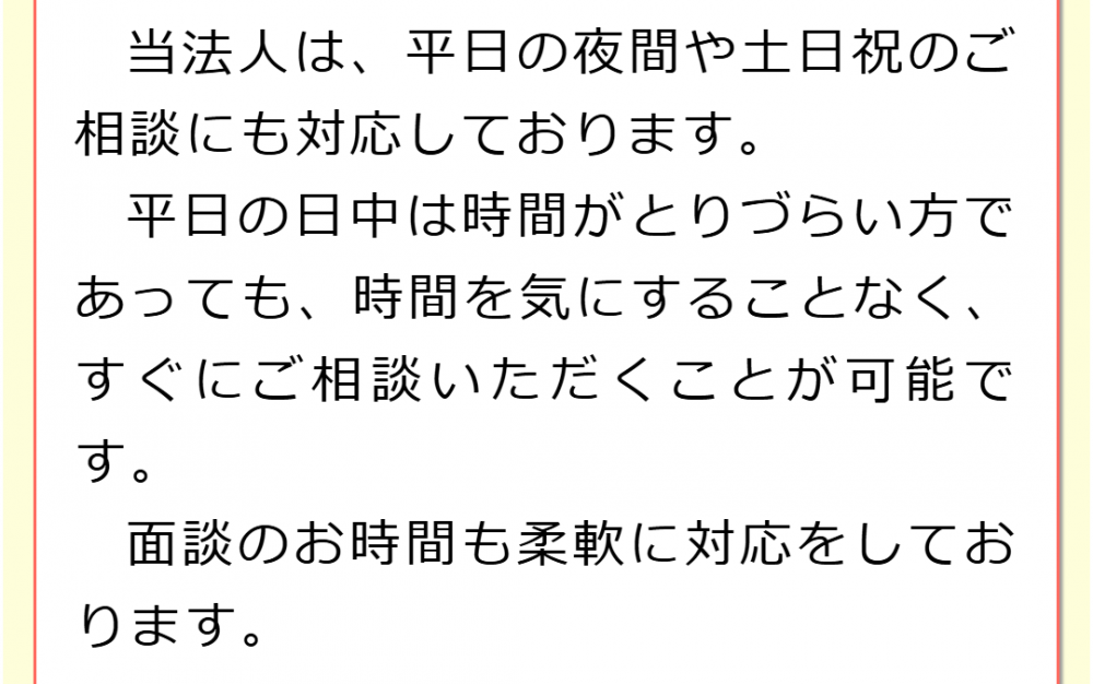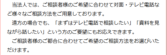当法人は三重に複数の事務所を展開しておりますので、三重の方やこれから三重で生活する予定の方など、ご利用いただきやすいかと思います。