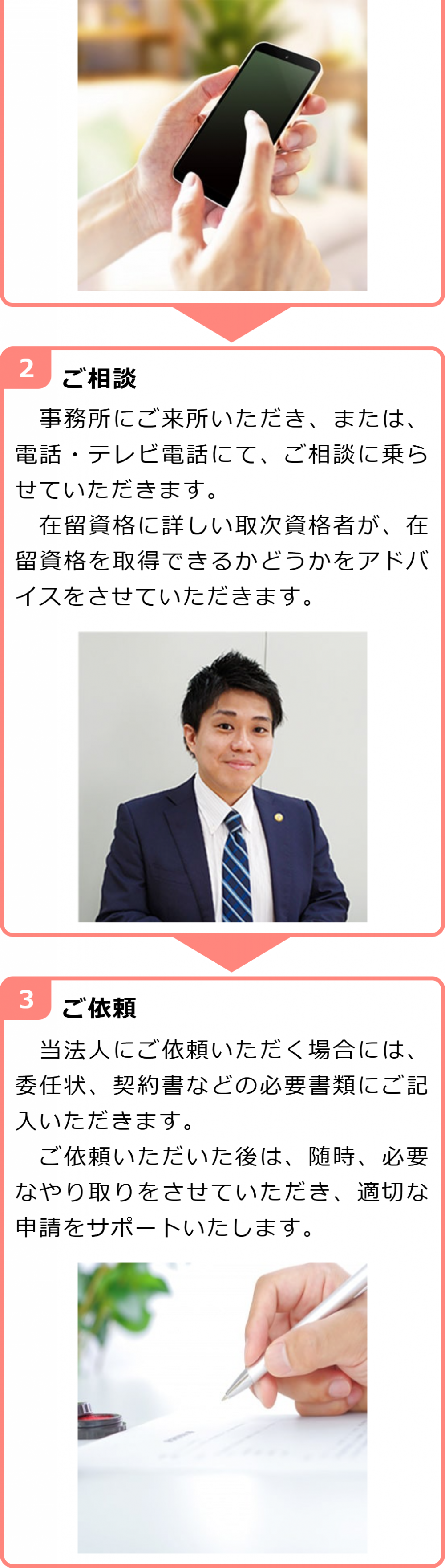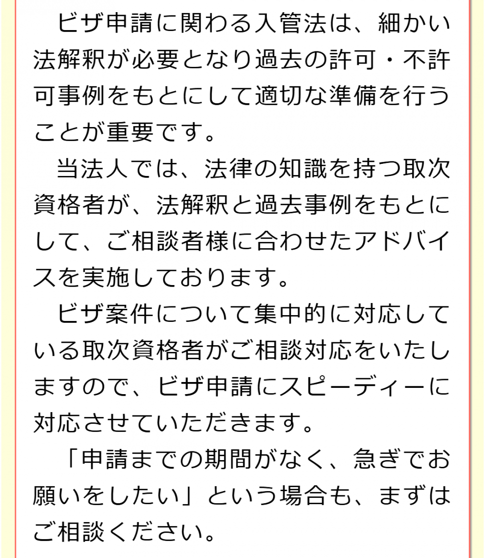 様々な配偶者ビザ申請のお悩みに対応できるかと思いますので、まずは当法人へご相談ください。