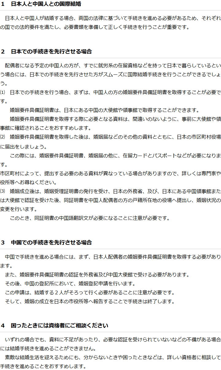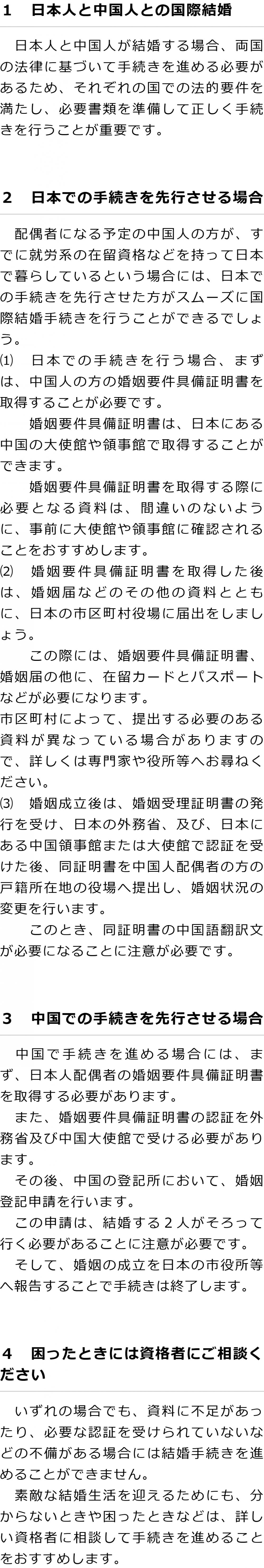 トップ中国人との結婚手続き 階層構造▼ 中国人との結婚手続き 受付時間 平日 9時~21時、土日祝 9時~18時 夜間・土日祝の相談も対応します (要予約) 所在地 〒111-1111 ●町●●建物● 0120-41-2403 お問合せ・アクセス・地図