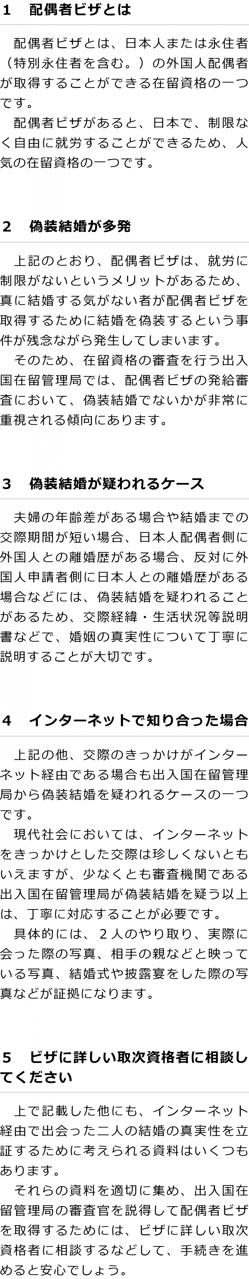 トップこんなお悩みはありませんか?ネットで知り合ったが、偽装結婚の疑いからビザが得られるか不安 階層構造▼ こんなお悩みはありませんか?(目次) ネットで知り合ったが、偽装結婚の疑いからビザが得られるか不安 こんなお悩みはありませんか?(目次)こんなお悩みはありませんか?トップ配偶者を海外から呼び寄せたい配偶者ビザへ切り替えたい配偶者ビザを更新したい短期滞在ビザから配偶者ビザに変更をしたい留学ビザから配偶者ビザに変更したい配偶者ビザを取得したいが、何をすればいいのか分からない離婚歴があり申請が通るか不安夫婦の年齢に差があり申請が通るか不安収入が少ないため申請が通るか不安ネットで知り合ったが、偽装結婚の疑いからビザが得られるか不安オーバーステイ・犯罪歴があるがどうすればいいか国籍別の結婚手続きについて知りたい 受付時間 平日 9時~21時、土日祝 9時~18時 夜間・土日祝の相談も対応します (要予約) 所在地 〒111-1111 ●町●●建物● 0120-41-2403 お問合せ・アクセス・地図